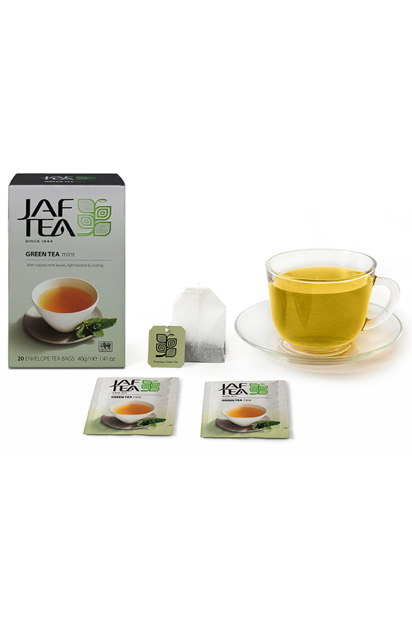 Los mejores tés verdes de las exuberantes montañas de Ceilán se mezclan con hojas de menta natural para crear este té refrescante.