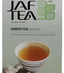 Esta mezcla cuidadosamente elaborada de té chino está perfumada con jazmín de la manera tradicional. Por la noche, las flores de jazmín que se abren para liberar su maravillosa fragancia son desplumados y almacenados con las hojas de té verde. Este proceso de perfume natural se lleva a cabo siete veces para lograr el equilibrio perfecto de sabor y fragancia antes de agregar una aspersión de pétalos de jazmín reales.